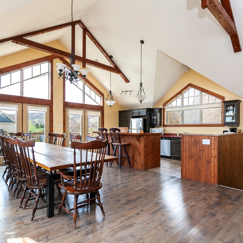 A beautifully designed 5-bedroom chalet built in classic ski-lodge style, featuring an open-concept top floor with a fully equipped kitchen, spacious living and dining areas, and expansive views of the ski hill. Enjoy a private hot tub and all the comforts needed for a relaxing family or group retreat in any season.