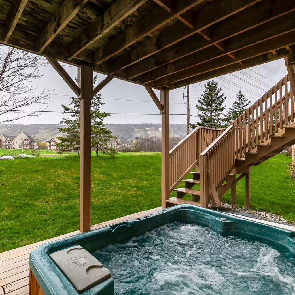 A 5-bedroom chalet that combines rustic charm with modern luxury, including a steam room and private hot tub. Enjoy the open-concept design and breathtaking mountain views from the balcony.