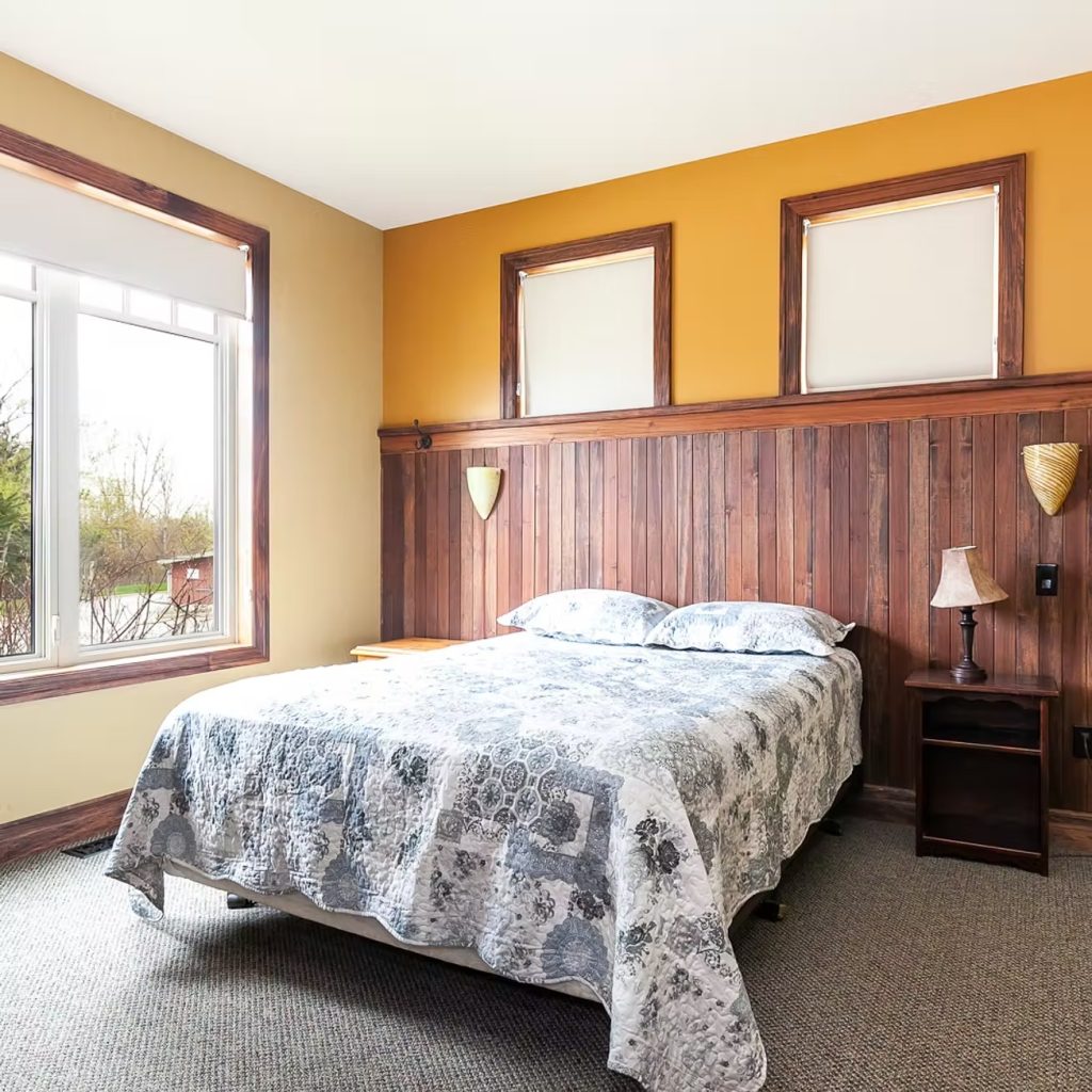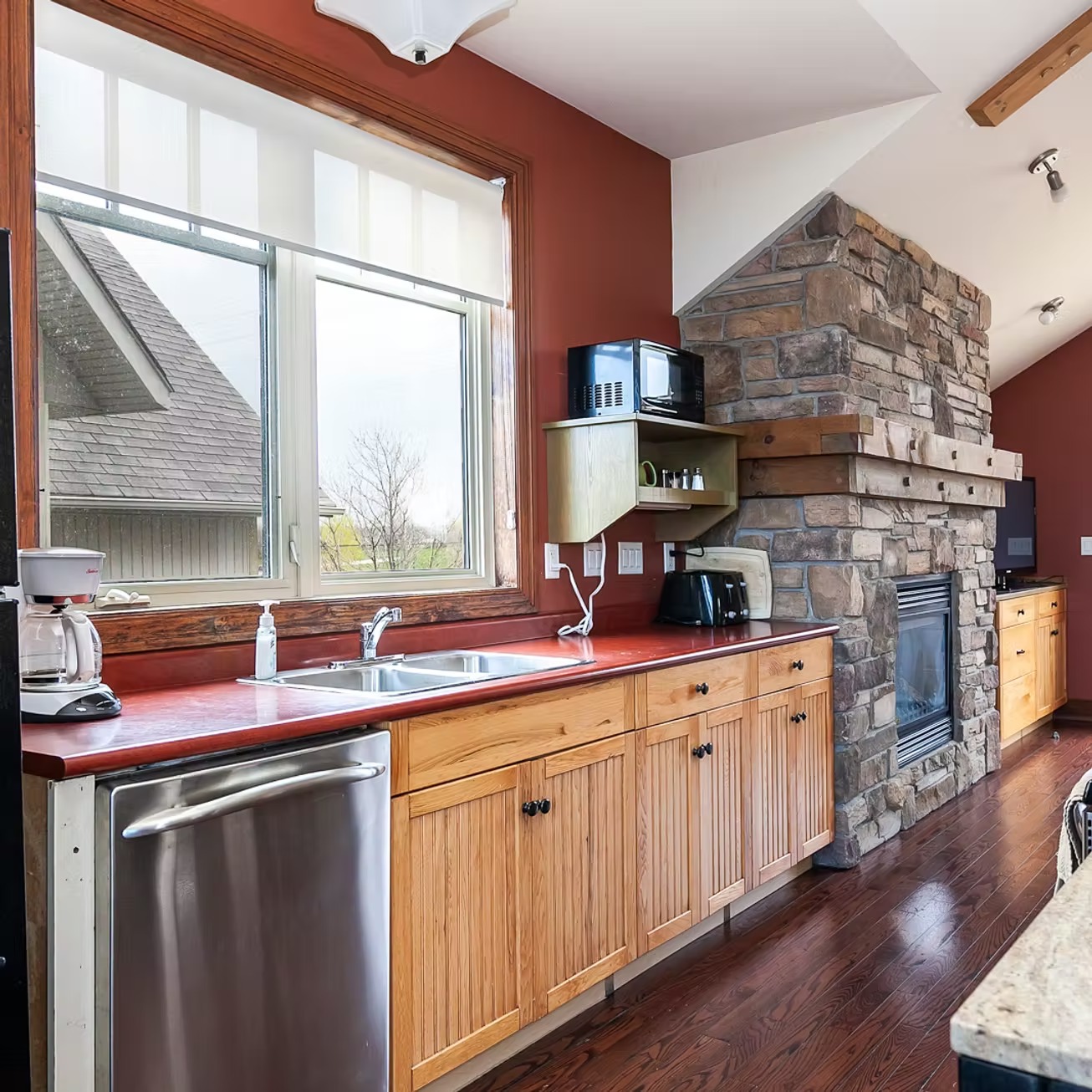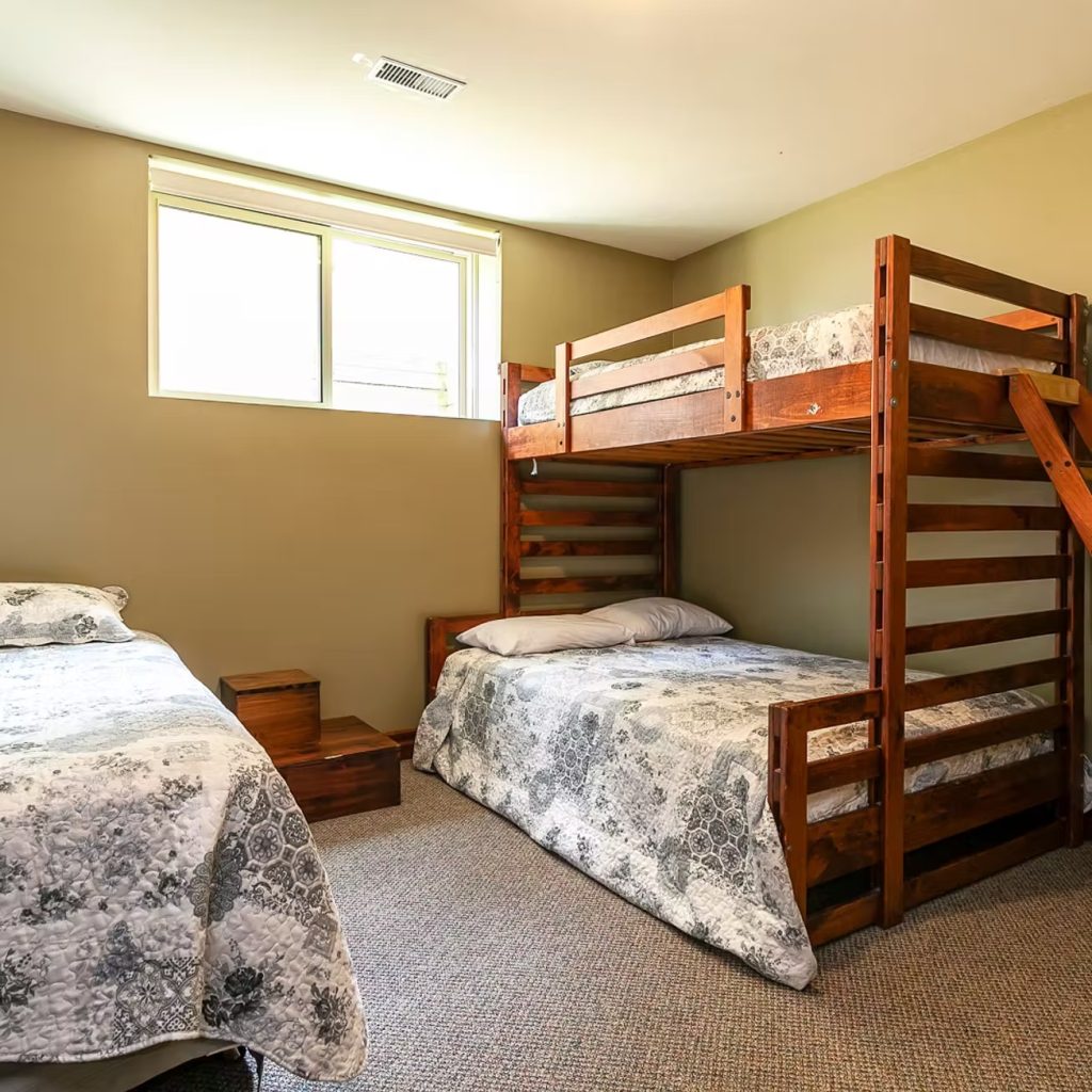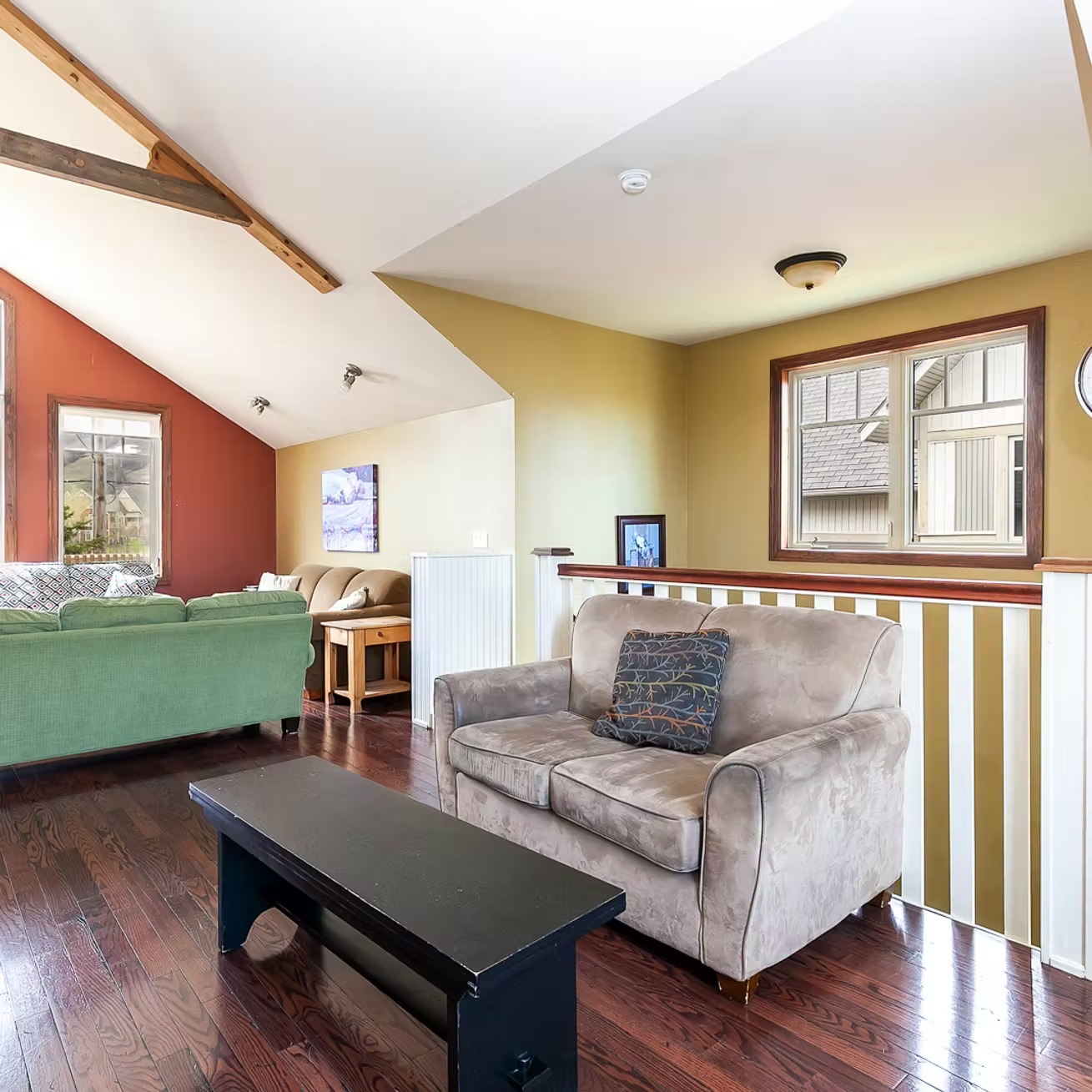 This pet-friendly 5-bedroom chalet offers a steam room, private hot tub, and an open-concept top floor. With unobstructed views of the ski hill, it’s perfect for year-round relaxation.