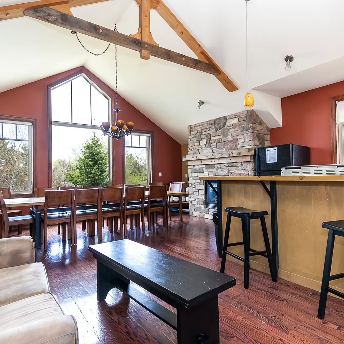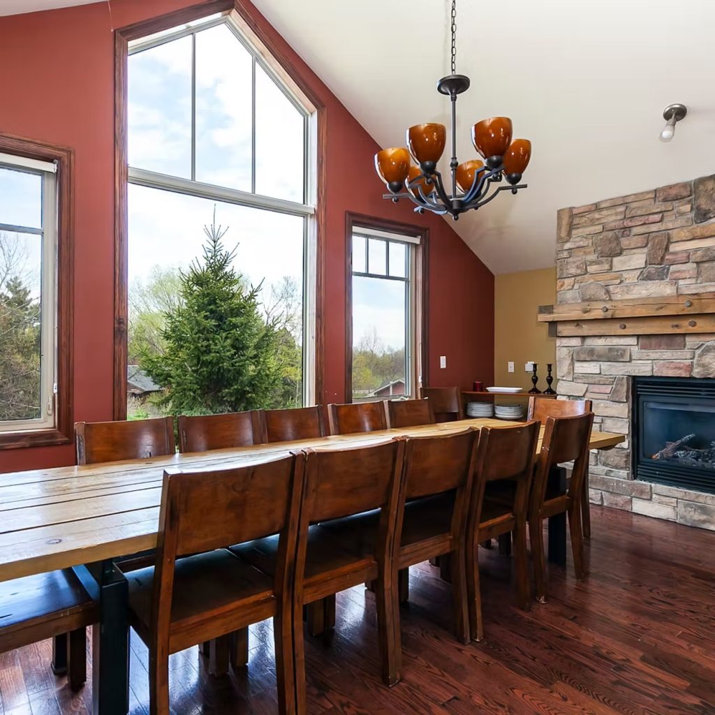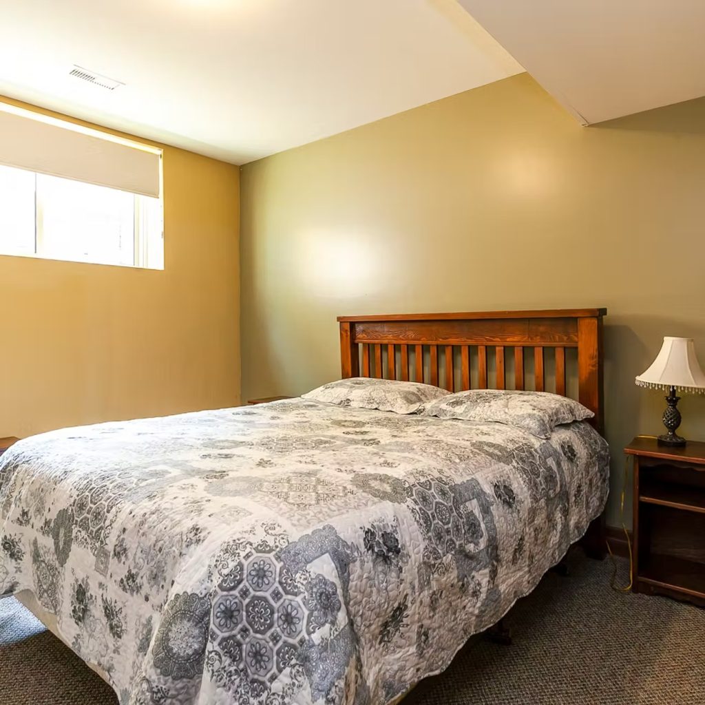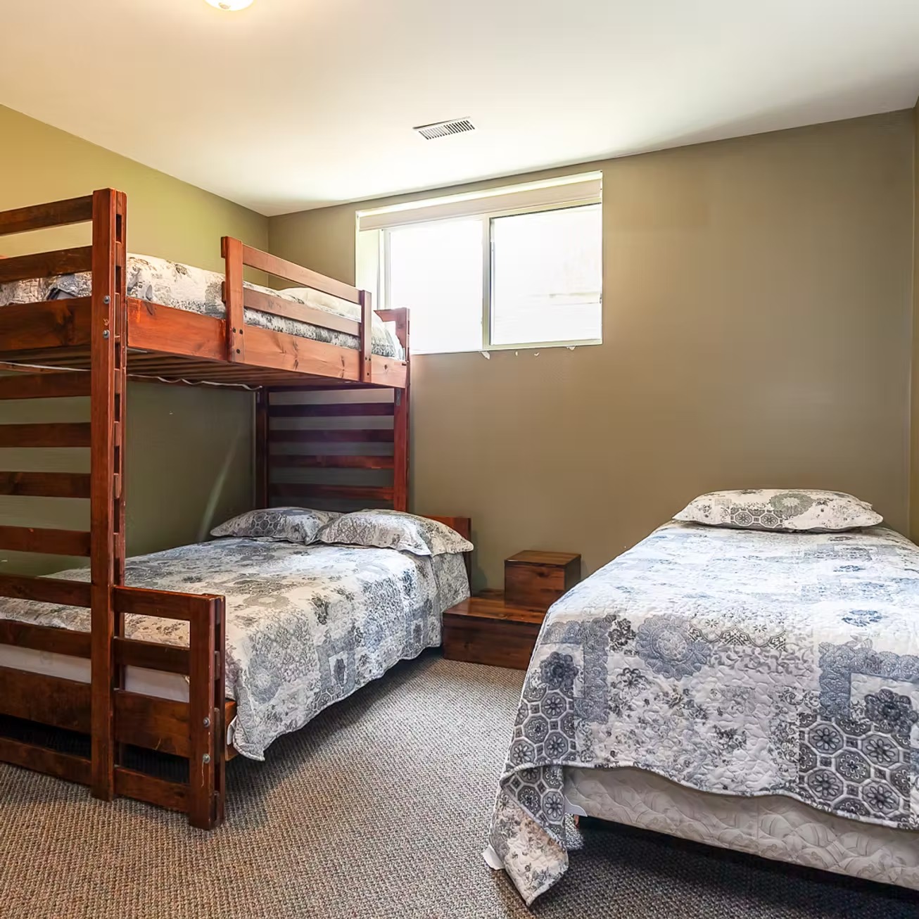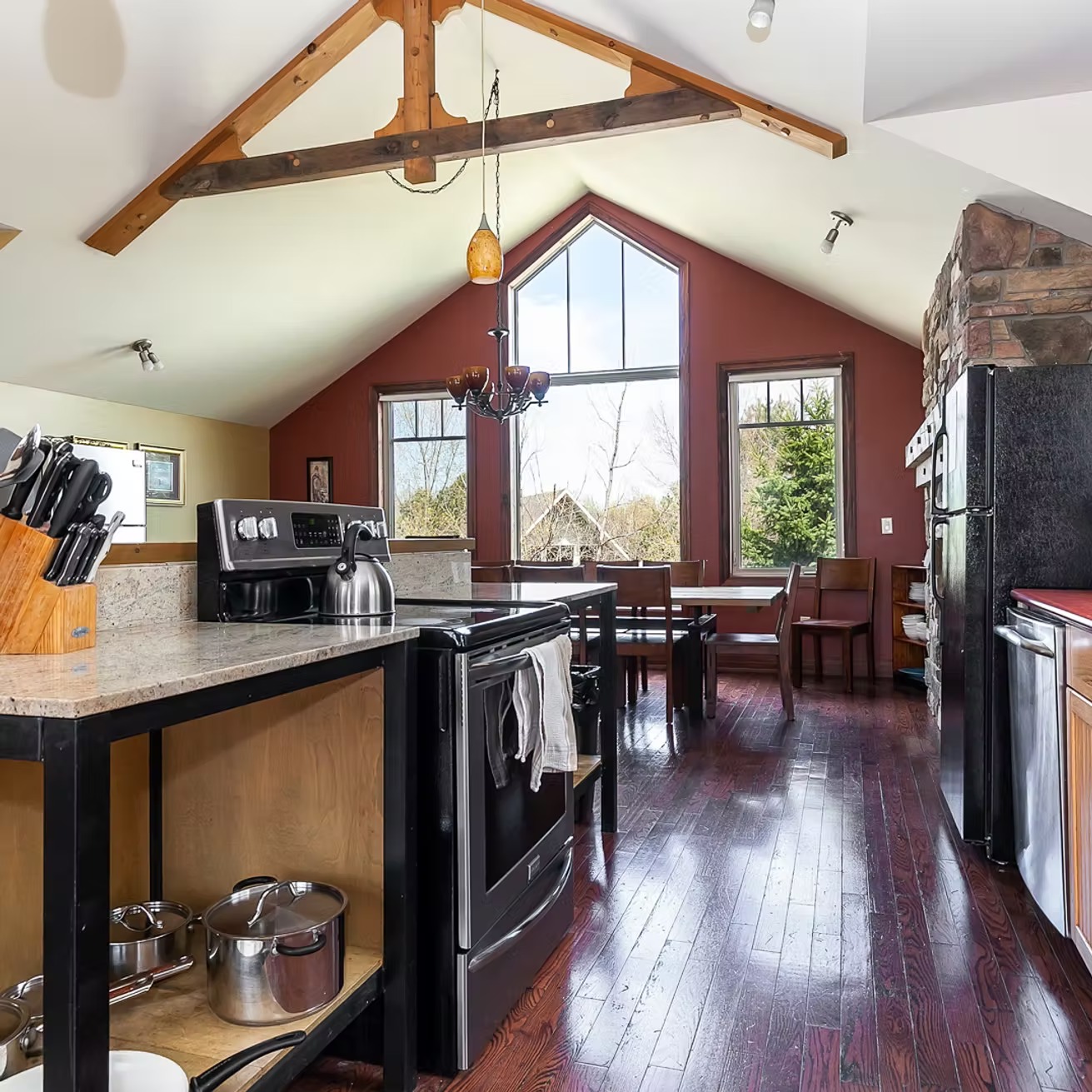 This pet-friendly 5-bedroom chalet offers a steam room, private hot tub, and an open-concept top floor. With unobstructed views of the ski hill, it’s perfect for year-round relaxation.