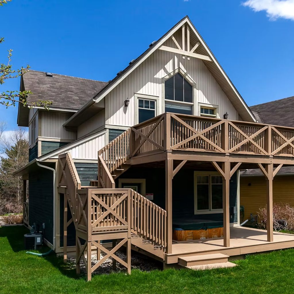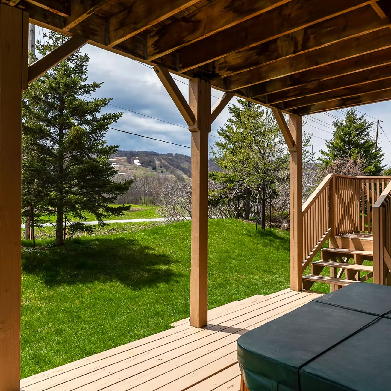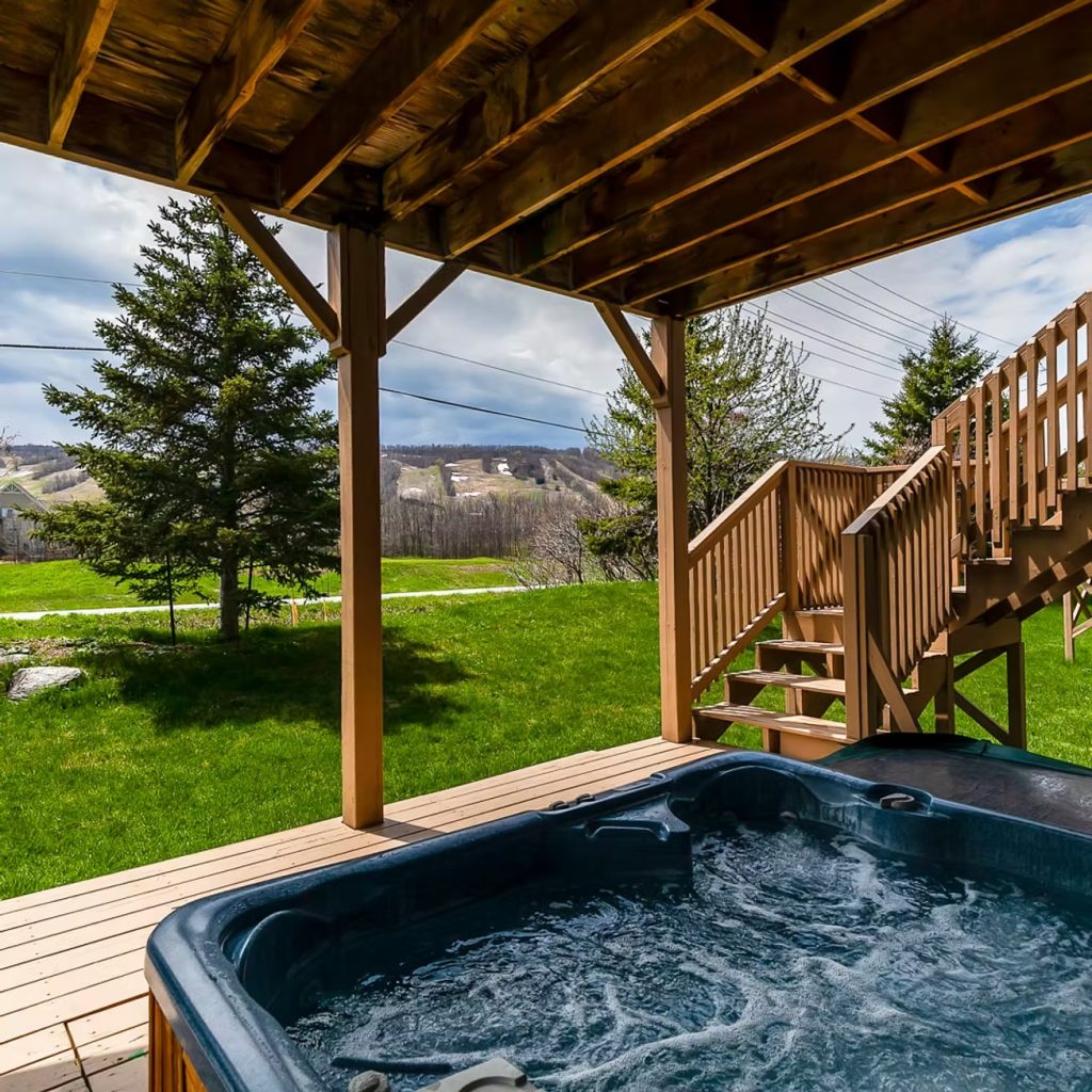 BOOK NOWThis pet-friendly 5-bedroom chalet offers a steam room, private hot tub, and an open-concept top floor. With unobstructed views of the ski hill, it’s perfect for year-round relaxation.
